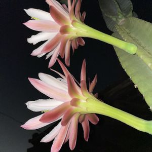 21:00撮影 柱サボテン 2番目のお花が咲きました。 変な場所に咲いちゃいました。脚立に登って✂️高枝切り鋏で切りました。 大きさがわかるでしょうか?