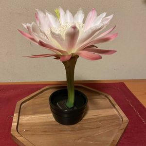 先程載せた柱サボテン🌵のお花 飾って眺めています☺️~🎶 危なくなく蚊もいないし、雨の心配もいらない☺️