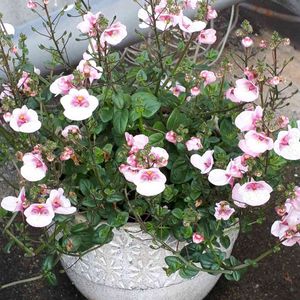 我が庭には水やりのみで 長く手入れを怠っている鉢ばかり。 元気なネメシアやディアスシアが 伸び放題になってる姿もいいかなと思うのは サボりを正当化してるだけですな。