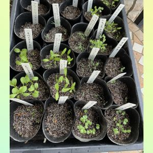 おはようございます🌧 何となく暗めな朝から始まって、今は霧雨が降ったり、止んだり。でも、後1時間ほどで晴れてきて今日は、夏日らしいです。気温差が激しくて何を着ていいのか悩みますよね。旅行から帰って来て、昨日は洗濯や片付け、やらなくてはならなかった事をすませて1日が終わってしまい…庭に出る時間もありませんでした💦 (コメントいただいているのに返信が遅れています。余裕が出来たら返信いたしますので、少々お待ちくださいね) そんな訳で本日の投稿picは、出かける数日前に蒔いた種の発芽状況。帰って来たら、ほとんどの種は発芽していました。(11種類蒔いて9種類発芽)今年はずっと暑かったので、種蒔の時期が難しく、蒔くのが遅くなってしまいましたが、何とか発芽してくれてホッ(*´∀`)-3 昨年は、ちゃんとした場所で購入していなかったり、貰った種ばかりだったからか、発芽が上手くいかず、すっかり種蒔は苦手と思っていましたが、ちゃんと芽が出る事がわかり、これからは、種蒔も頑張ろうかと思えるようになりました。 未だに芽が出てこない、ブルーレースフラワーとエリンジウム ブルガティ アズライトも早く芽が出るといいな😊 *️⃣種の袋をよく見たら、エリンジウム ブルガティア アズライトは、発芽まで1~3ヶ月と書いてあって…なるほど発芽しない訳だ💦(そんな種があるなんて…初めてだわ) でも、ブルーレースフラワーの方にはそんな事は書いて無いから、発芽してもいいハズだけど、5ミリの覆土って書いてあって、種が土の上に出てしまっていたので、それが原因かしら?早速覆土しました。 *11月8日朝、ブルーレースフラワーの発芽を確認しました。