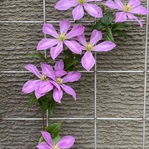 壁に造花の様に見える クレマチスのお花 壁の花🌸 可愛い花は すぐ相手 見つかりますね ほっとかれない 可愛い色で咲いて 壁と違和感もなく 一体化してさいてた