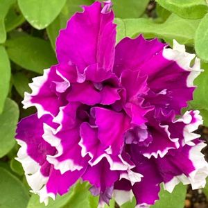 今日のお花ペチュニアさん とは知らなくて ある方のところで知り きゅうょ出て貰いますね この子一籠🧺330で18株の 中の子で瀕死状態で葉っぱも 2、3枚しかなくて寄せ植えで 咲くとはあてにもしてなくて お花の生命力に乾杯🥂ですね