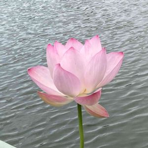 優しい色の蓮の花 物思い 静かにたちて 風わたる