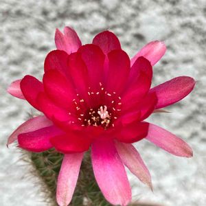🌺赤いサボテンのお花が 今日に合わせるかのように 咲いてくれました これはご近所さんに頂き まさかお花が咲くとは 思いもしなくて 嬉しいですね😃 赤い花 月の初めに 合わせ咲き 可愛い顔で お祝いしてる🎀