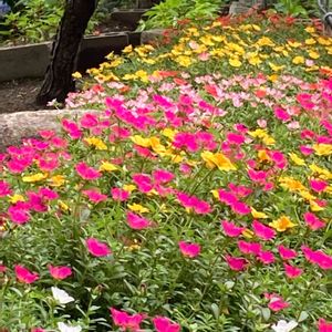 公園の一鶴に咲いていたマツバボタン いろんな色が咲いていてとてもきれいで でした。🎵🌸✨🌺 お日様に照らされてキラキラと輝く姿に 思わず撮りました🌸✨🌺✨🍀
