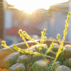 おはよーございます☀️ 眩しいね 朝日パワー届いたかな センペルビウムの新芽ニョキニョキ🌱🌱🌱 素敵な金曜日をお過ごしくださいね💚🍀