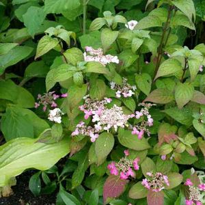 この中に三種のあじさいが育ってます。 山あじさい、ピンクになってきました🎵 雨後はしっとりキレイ!