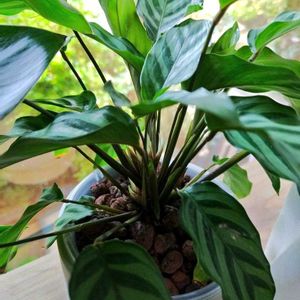 カラテアの半水耕栽培セミハイドロポニックスもいい感じです😊水用の白い根っこがようやく出て来ました😊カラテアビューティスター😊カラテアロゼオピクタ😊