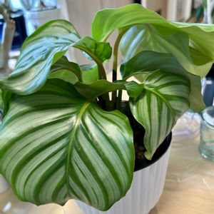 にまい投稿できるかな? 一枚目葉っぱ沢山になったカラテアマコヤナです。 二枚目は去年の同じ株です。 いっぱいになってくれました😆