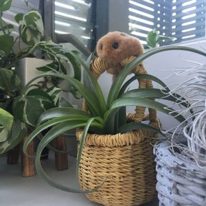 チランジア・ツイステッド・ティム Tillandsia Twisted Tim (T.intermedia x T.capitata) ちゅるんちゅるんがほどけて、葉を大きく広げ気持ちよく日光浴中〜(*´꒳`*) ヤマネくんもお伴してますw