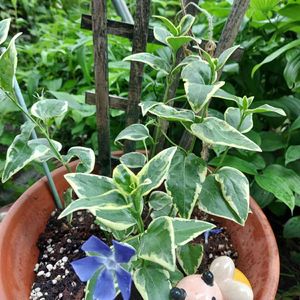 最後の探検も、本日は斑入りの葉で締めようと思います🤗 姉妹宅で山ほどもりもり😱なのでおすそわけ、ツルニチニチソウ☀️ 化け物だけど、使いようには素敵な花ですよね☺️ 地植えはやめておこうと思います🤭 おやすみなさい✨