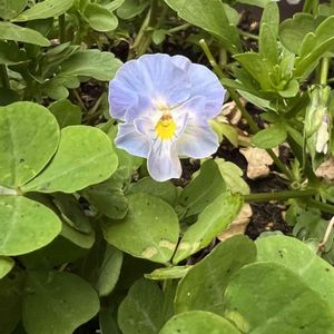 こぼれ種の濃いブルーの忘れな草 こぼれ種ののビオラと 雑草とともに… 草取りしなきゃ… こぼれ種で咲くのお得感あって大好き