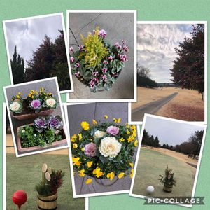 ゴルフ場の花壇 パンジー・ビオラ、葉牡丹が植えられていました スタートホールで みんなが素振りをしている中 一人お花の写真を撮っている私…😅 モリモリ咲いた頃また行きたいなぁ〜
