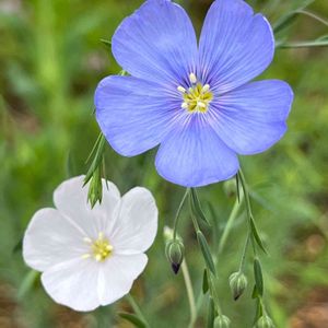 こんにちは❣️ リナム(亜麻)とニゲラグリーンマジックです。 リナムは1番花の後にカットして2番花です❣️ ニゲラとのコラボは可愛い😍 ニゲラは種袋を作ってるところも可愛い😍