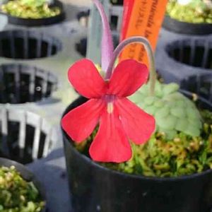 Pinguicla laueana 'CP-1' 帰ってきたら咲いてました🎵 真っ赤でかわいい😆🎵