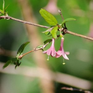 ウグイスカグラ 鶯神楽 別名 ウグイスノキ 鶯の木 スイカズラ科 スイカズラ属の 落葉低木 北海道、本州、四国の山野に自生し、樹高は1m~3mで株元から枝をたくさん出してわさわさと茂るそうです。 私が 出会ったのは 病院のお庭でした。 お名前の由来は、諸説あるそうです。 ウグイスが この木の茂みに 入り込んで 隠れる様や、ウグイスが この木の枝を渡り歩く姿が 神楽を舞っているようだとしたことなど… ウグイスが鳴く頃に開花するため、ウグイスノキという別名がついたそう。 お花は 1.5~2cmくらいで 下向きにぶら下がってます。 初夏に熟した実は、赤くグミに似た形で 甘みがあって 食べられる!!そうです。 ウヒヒ 花言葉 未来を見つめる 撮影 2020 3/18