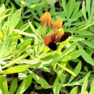 ロータスブラックグーニー 黄色と黒赤、もしくは黒みかかった濃茶のカラー 美しいコントラストでユニークな花 葉は爽やかで優しげにふんわり🎵 可愛らしくてお気に入り。 地植えは冬場乗り越えなさそうで出来ずにいますが、挿し穂で増やせたら地植えにもしたいと思案中です。