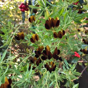 ロータス「ブラックムーニー」 茶色と黄色の花です。毎年 咲いてくれます💕 ピントが😓