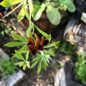 お店の前で鉢植え🪴されてました。茶色いお花🌼が咲いてます。 これはなんでしょうか? ロータスブラックムーニー🤎というそうです😊ありがとうございます🎶