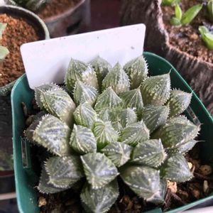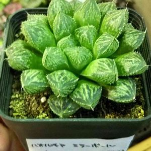 先週の土曜日、日曜日で隣市のホームセンターでお肉園の多肉植物のイベントが有りました😃✌️。 なので☺️、そのイベントへ行くでしょ😆👍️❤️。 土曜日に多肉植物のハオルチアの「ミラーボール」と、ハオルチアの「レテキュラータV、ティンカーベル」と、多肉植物の土を2つ購入したしました😆👍️❤️。 日曜日にもイベントに行き、多肉植物の土を1つゲットしたしました😆👍️❤️。 内心「日曜日にもハオルチアの気になる物をもう1つ購入しようかな😅?」と思ったのですが😅、その時間ではお目当てのハオルチアの硬葉タイプも無かったし😅、ハオルチアのレテキュラータの種類で「ボタニーク」って言う種類はお肉園さんでは取り扱いが無い種類でした😅。 残念です😢。 この前の予算ではかなり予算オーバーになってしまったので😭💦💦、今回の購入予算は2日間で2千円にしていたから今回は予算オーバーに成らなかった😆👍️❤️し、春よりも多く購入しなかったのが良かったです😆👍️❤️。 土はいつも通りに1つ¥200円(税込)でした😆👍️❤️。 ハオルチアのミラーボールは¥600円(税込)、ハオルチアのレテキュラータV、ティンカーベルは¥700円(税込)でした😆👍️❤️。 土曜日に購入したのですが😆👍️❤️、ティンカーベルだけは日曜日に購入すれば良かったと思ってしまった出来事が有りました😅。 日曜日に残っていたハオルチアのレテキュラータV、ティンカーベルが1つの子が😅、子株たくさん有って☺️状態が土曜日より良く無かったけど😅、金額が¥600円(税込)だったから土曜日に購入するじゃなかった😨と思い😅少し失敗😵💧しました😱。 まっ、そんな事も有ったけど😅、多肉植物の素敵な出会い😆👍️❤️に感謝します😆👍️❤️。
