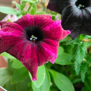 おはようございます。( *´ω`* ) ペチュニア流れ星さん!🥰 冬越し、成功しました。🤭 派手なピンク色の花で〜す。 🖤色の花も、咲きます。🥰 2色の花が、咲くので、お得感ありま〜す。😊 わ~*。٩(ˊᗜˋ*)و*。~い!! 今日も、良い天気で〜す。 ガーデニング日和、頑張りま〜す。٩((灬∀灬))۶エヘッ*+🐱🐾
