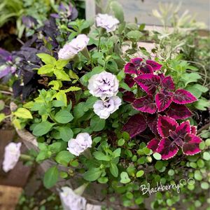 今日も寄せ植え🎶 好きなのよね〜寄せるの(o´艸`) ♧ペチュニア ヴァンサンカン ♧トウガラシ パープルフラッシュ ♧小型コリウス ときめきリンダ にあり物グリーンを寄せて ワイヤープランツ シスタスミッキー ラベンダーメルローなどと。😃