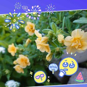 お疲れ様(*・ω・*)ゞデシ!! 今日も暑かったですね〜(;´Д`)ハァハァ カリブラコア ティフォシーダブル ディープイエロー🍀 夕風に 揺れ咲く花火に 瞳がハート❤ (*♡д♡*)字余り(*´罒`*)笑