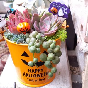 こんにちは~☔ 今日の気温(11・15) 昨日の午後からすっかり冷え込み体調が(_ - -)_ バタッ 温度に敏感でほんと困ります😭 昨日の可愛い子がやってきたのでmimirinちゃんに頂いたハロウィン🎃鉢にちょっと寄せ寄せ❤ 寒くてベランダに長居出来ないので少しづつ植え込んで出来たてホヤッホヤ💨 🏷𓈒𓏸︎︎︎︎ハロウィン月間🌚👻🎃🕸🕷参加させていただきます🌚👻🎃🕸🕷