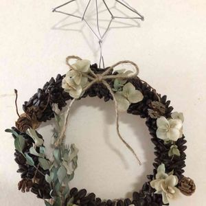 ❄🎶リメイク珈琲豆のリース♬ もう珈琲の香りはしませんが、オレガノケントビューティ、ユーカリグニー、メタセコイアの実などで、リメイクしました。 ちょっと、地味めです。