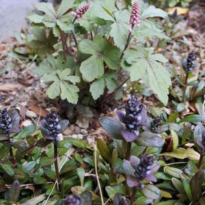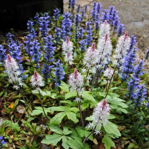 こちら秋に新規に植え付けたティアレラです。 ここのスペースはカシワバアジサイの足元で完全な日陰になってしまうのでこれまでアジュガが一面に増殖してたんですが、もうちょっと雰囲気を変えてみようと思いティアレラを植えてみました。 ティアレラは初めてなんですが、アジュガと同時に花があがってきたのでもしかしたら青とピンクの花が同時に見られるかもと今ワクワクしてます(`・ω・´)ワクワク