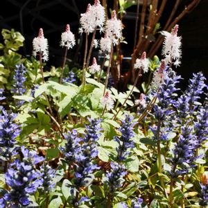 こんにちわ。 今日はものすごい良いお天気で、光で色がとんじゃって写真がとりづらい(;^ω^) ティアレラのピンクとアジュガの青の対比がとてもかわいいことになってます。アジュガがもう少し咲いたら色が映える時間帯にもう一度写真とろ(`・ω・´)