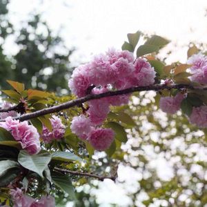 今日は長崎県大村市にお出かけしました。🚙 途中パーキングにオオムラザクラ(大村桜)🌸葉桜のなか残っている花を見つけパチリ🤳と撮りました。(一枚目写真) 大村桜は八重桜を二つ重ねた格好の独特の二段咲きで、ガク弁は10枚(普通は5枚)花弁の総数は60~200枚もあるそうです。