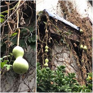 東京の真ん中で空き家を静かに覆って実を付けるひょうたん。