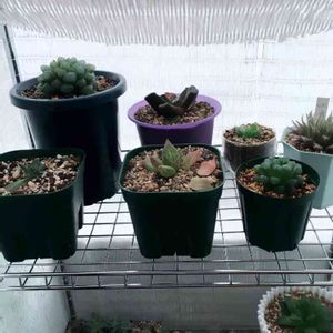 お外組ちゃん達❤ 手前の真ん中の子と、その後の子は、タニパトに行った時に、カラッカラで茶色くなって死にかけていた子😱 救出してすぐに植え替え!!! カイガラムシにやられてて、大変だったけど、なんとか緑になってきてる(*´ω`*) 品種不明だけど、可愛い子達❤ もっともっと元気になぁれ(*´³`*) ノ