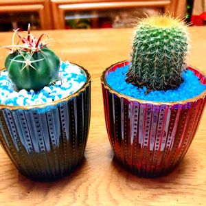 100均の素焼き鉢に色を塗り100均で買ったサボテン達を植えてみました🌵 元気に育ってくれるといいな🌵