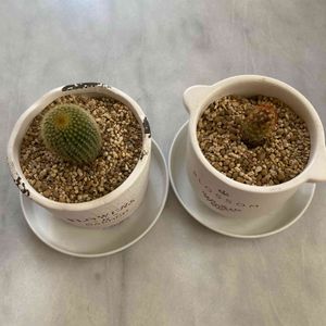 おはようございます🌱 今日は朝から☔ 100均で見付けた可愛い♡鉢? …やっと植え替えました♡ (*ˊ艸ˋ) 迎えてから余り変化は見られない「マジョール」と 「キンコウマル」🌵 これから梅雨入り、晴れた日は出来るだけ外に出してあげようと思います♡ 増えたら寄せ植えにもしたいけど…先ずは元気に育って欲しい♡