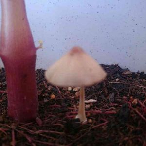 おはようございます。 鳳仙花の茎の根元にこんなものが〜ビックリ! キノコさん😆 毒キノコ🍄??