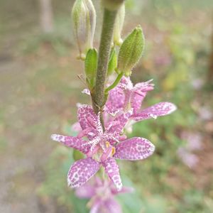 ホトトギス(杜鵑草)ユリ科ホトトギス属 山の公園のホトトギスが咲き出しました。 ロケット🚀のような蕾も可愛いです。 カメラ🤳🏻のせいか、少しピンクっぽく写ってますが、実際はもう少し紫色です。 🏷 金曜日の蕾たち