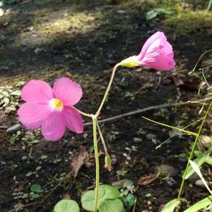 ハナカタバミでしょうか? 山の上のベンチの横に咲いていました。 ピンク色が目立ちます。 葉っぱも可愛いんです。 🏷ピンクワールドにようこそ
