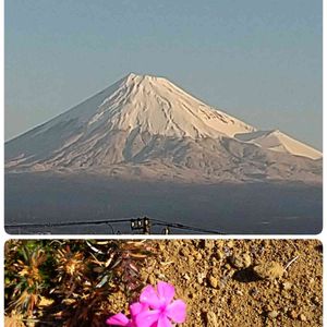 おはようございます。🌞 やっと冬の富士山の姿になりました。 7時25分撮影 シバザクラ 1月21日 岩本山公園にて