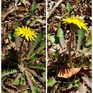 岩本山公園で見つけました。 花のつけ根にある総包片が閉じているのがニホンタンポポです。