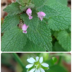 梅を見に来た公園の花壇の中で咲いていました。 上 ヒメオドリコソウ 下 コハコベ