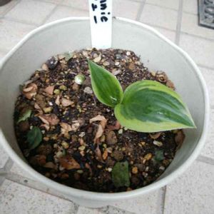ギボウシ アレガンフォッグ。 一進一退やっと少し大きくなりました。 矮性の白中斑は気難しい方が多いです。白が綺麗なんですけど。