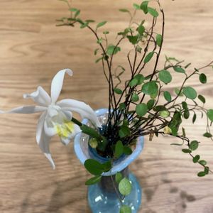 先日投稿したセロジネをカットして花瓶に挿したらいい感じだなと自己満足😂 初めての胡蝶蘭の花芽はグングン伸びて楽しみ😊🎶💓