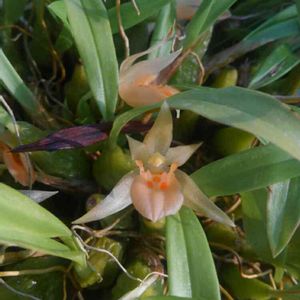 Panisea uniflora パニセア ユニフローラ セロジネの近縁で、透き通ったオレンジ色の花です🎵 花は小さいですが、非常に丈夫で花着きも良いです🎵