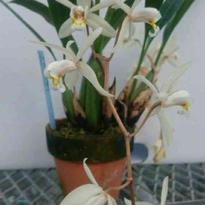 こんにちは✨😃❗ 静岡の東部は雪で大変みたいですが、こちら浜松は風は強いものの、晴れてます☀ Coel.flaccida′Lucky Boy′ セロジネ フラクシダ ′ラッキーボーイ′です。 フラクシダの選抜個体です。 薄いベージュ色の花が下垂して咲きます。 華やかではないですが、落ち着いた雰囲気です。香りもセロジネらしい香りがします。