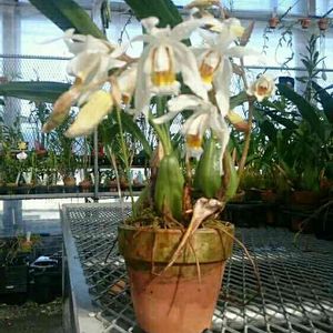 こんにちは✨😃❗ 娘の幼稚園で学級閉鎖があったり、所用でバタバタしてました😅 Coel.cristata f.alba′Pure White′ セロジネ クリスタータ アルバ′ピュアホワイト′ 2011年の東京ドーム世界ラン展の日本大賞受賞花の分け株です🎵 他のクリスタータに比べるとバルブの間が伸びますが、花は純白で良い香りがします。