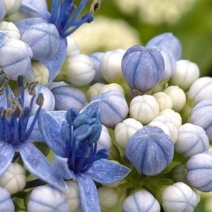 天竜千鳥💙 本日2枚目シツレイシマス 天竜千鳥の可愛い蕾が弾けて花が咲き出してます🌼💙 蕾はなんか和菓子みたいに可愛い💞 三河千鳥の方が出回っていますが 検索すると 静岡は天竜のお寺の庭に枝変りが有り 何故か登録間違いで三河千鳥となったと記されてる🤔 どうしたら天竜が三河になるのか🧐🤔 なんでだろ〜う♪ 装飾花が無いのは中国原産の碧の瞳とよく似てます。 花開くと蕊がハッキリし満開になると全体が青く染まります🩵💙