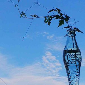 久しぶりの夕焼け~😉 冷たい空気でも ロゼワインカラーの宵の空に心暖まるひととき 風船みたいに膨らんだ コカ・コーラ瓶のリメイク器と 白いドライのコットンは黄昏色に染まりました