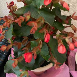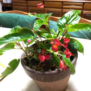 ベゴニア ドラゴンウィングレッド 冬はスキー客をお迎えするペンション🏡 出窓に、冬の間もずっと可愛い花を咲かせ続けた鉢植えがありました🪴 名前の由来は、 大きめの葉っぱがドラゴンの🪽のように広がる様子からだとか(´•᎑•`)♡ 蔵王坊平高原のペンションにて⛰️🚗 🏷️うつむく花♪